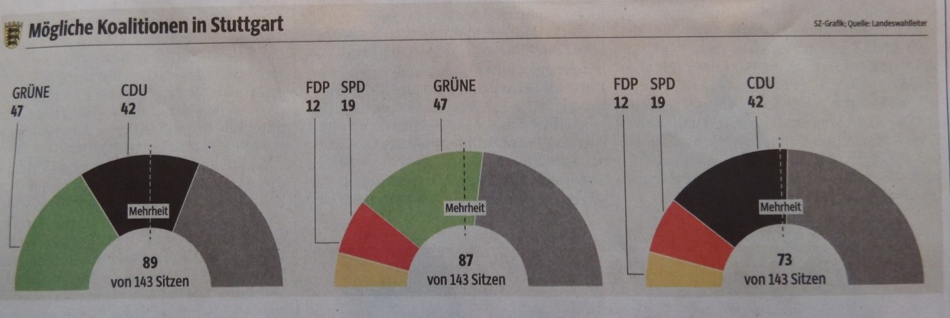 バーデン・ヴュルテンベルク州連立可能性(左から黒緑・信号・ドイツ連立)
