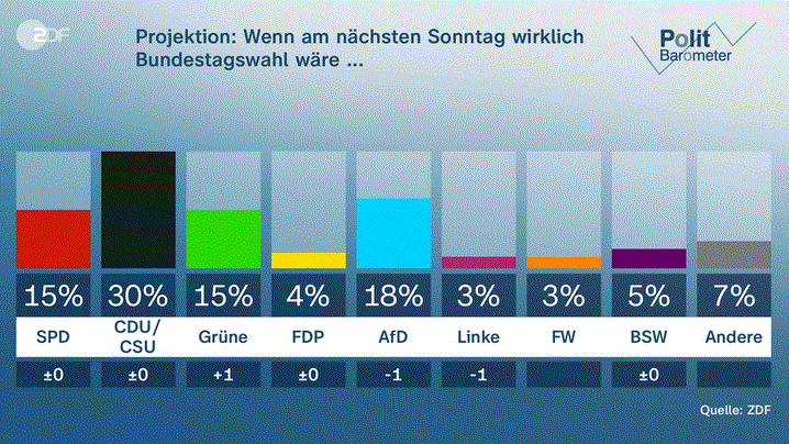 図1 明日、連邦議会選ならば、どの政党に投票しますか(2024.03.08)